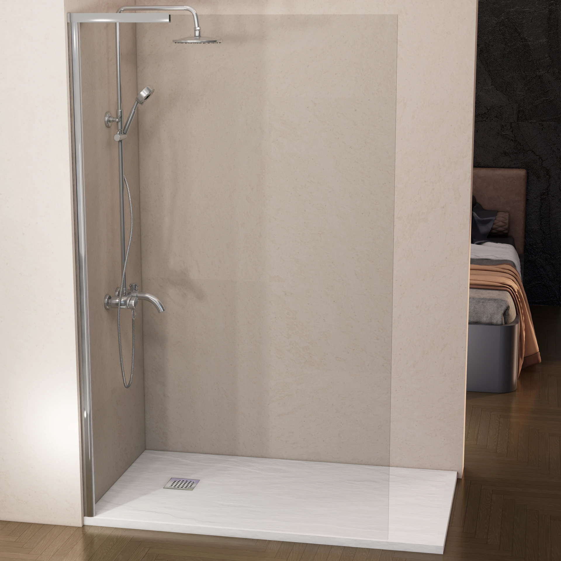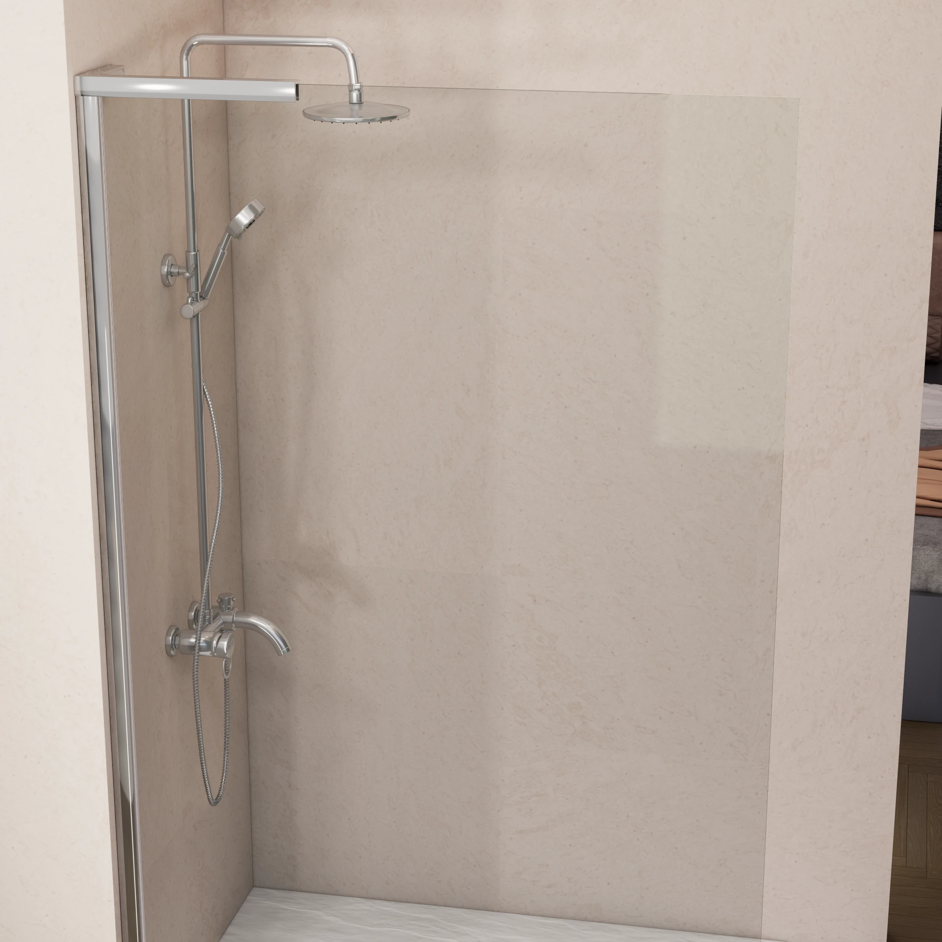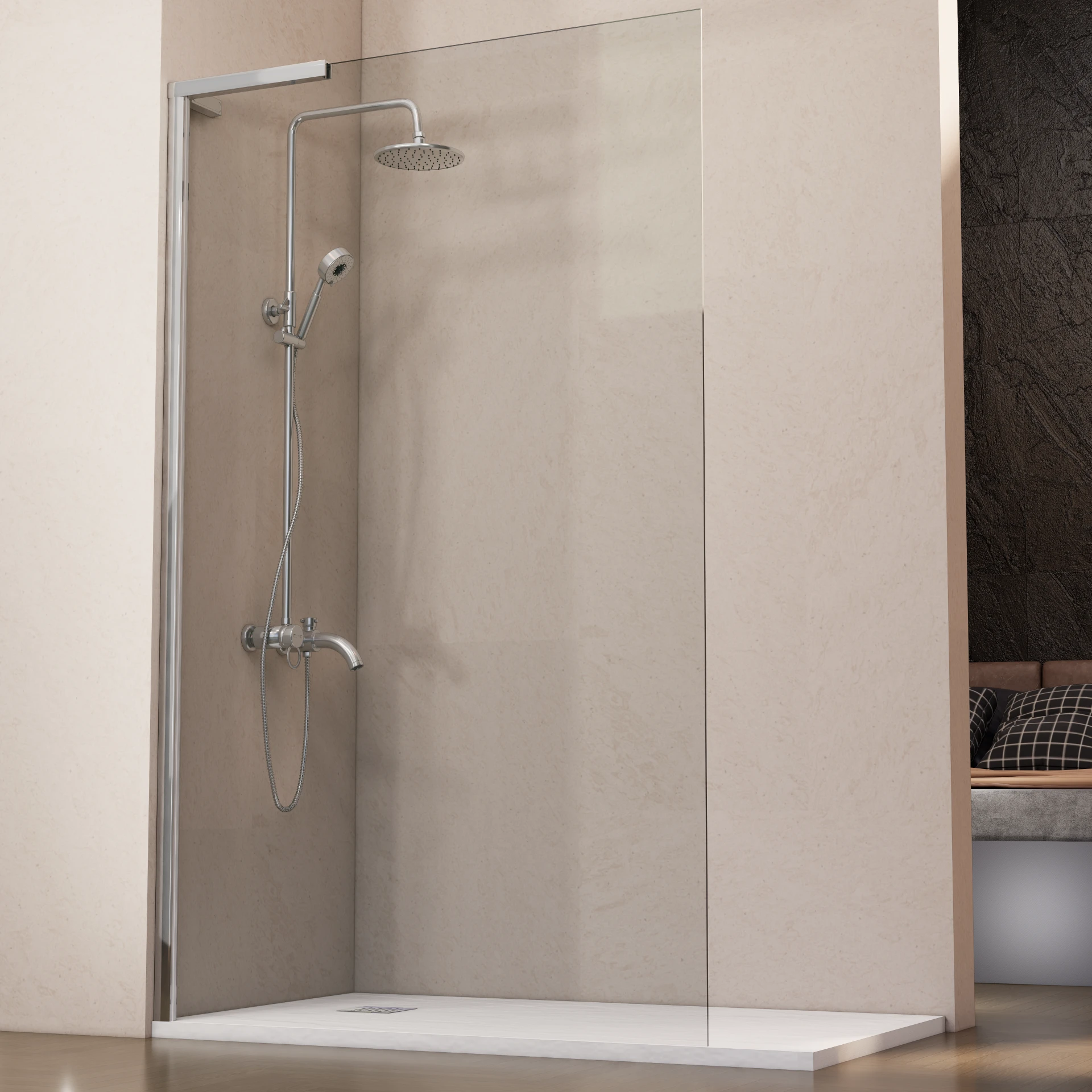 La mampara de ducha fija transparente ofrece un estilo limpio y elegante, ideal para baños modernos. Su estructura robusta y el vidrio templado de seguridad de 8 mm garantizan estabilidad y durabilidad, aportando amplitud visual y un ambiente abierto en la zona de ducha.