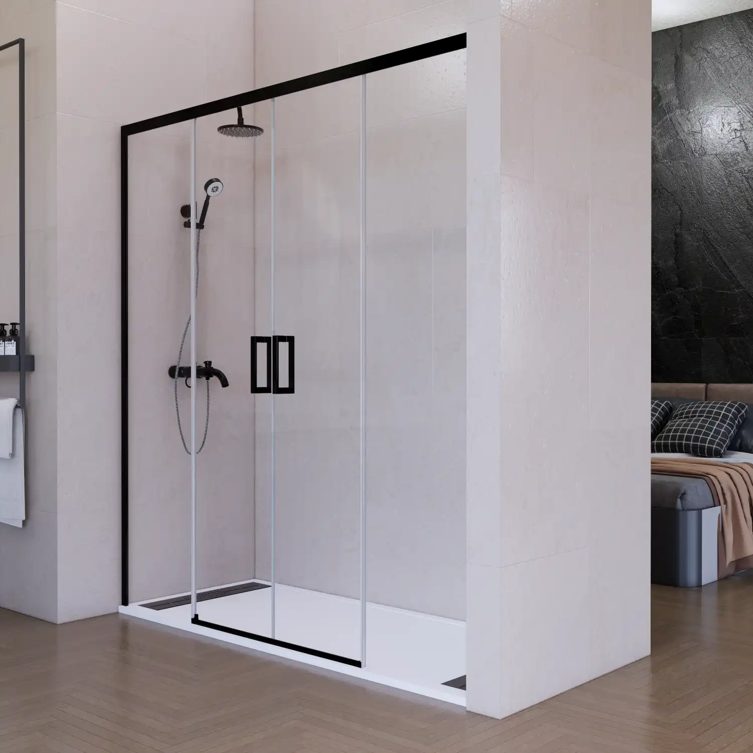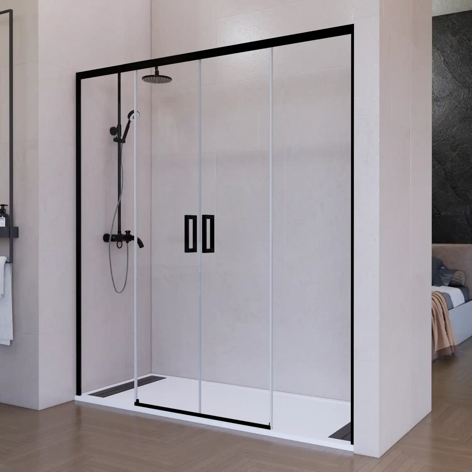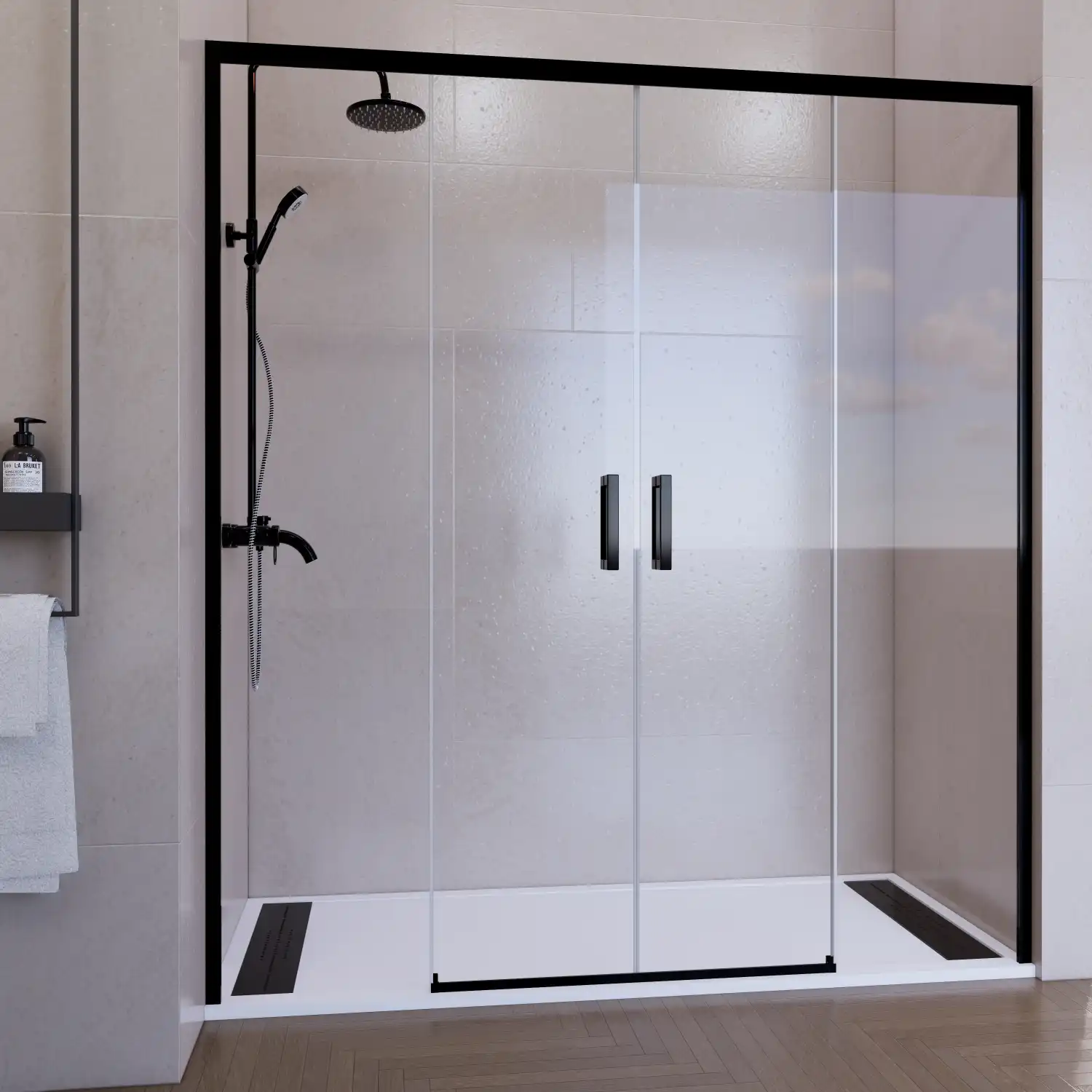 Mampara de Ducha Frontal Corredera – 2 Puertas + 2 Fijos – Altura 200 cm