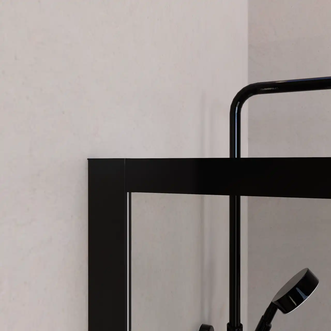 La perfilería de aluminio y el vidrio templado de seguridad de 6 mm garantizan durabilidad, estabilidad y un acabado elegante en Cromo Brillo o Negro Mate.