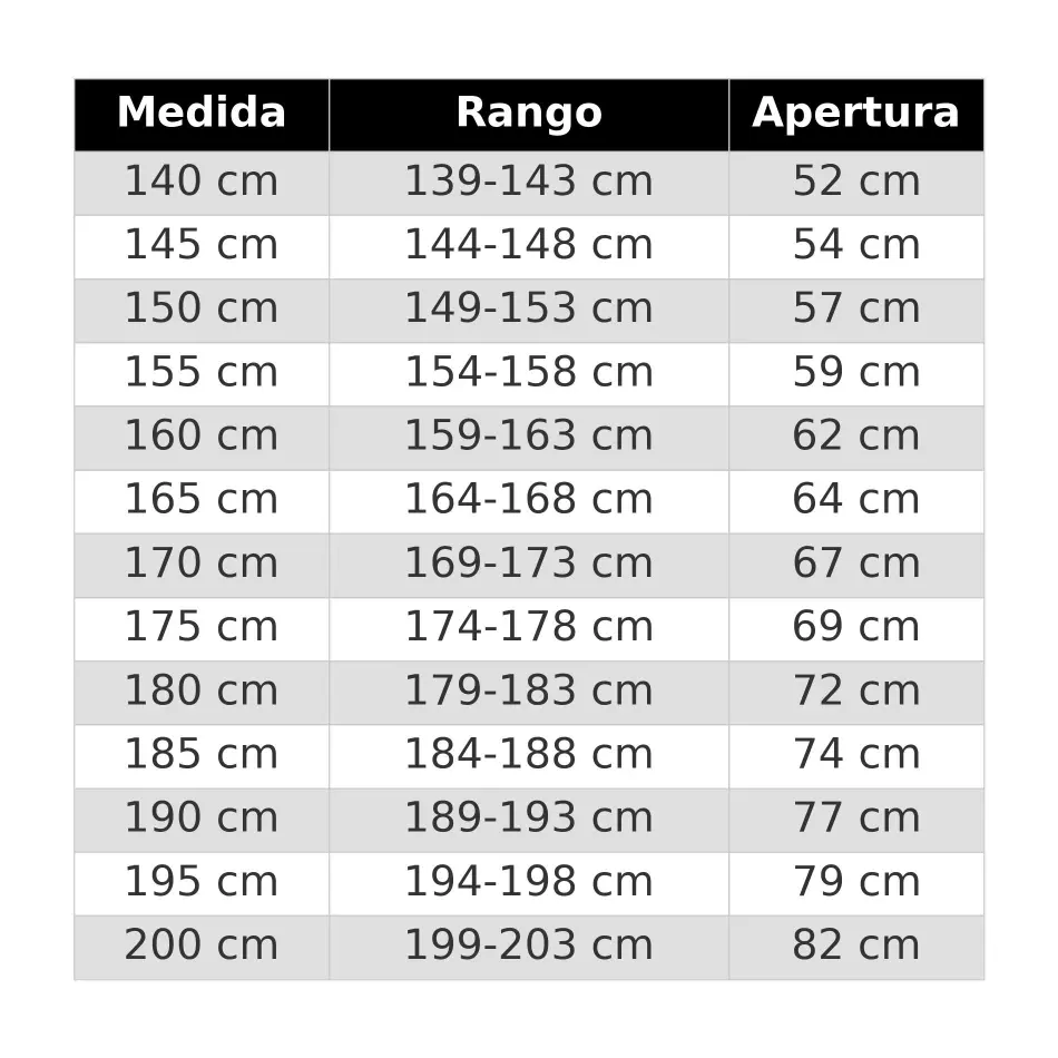 • Medidas: Desde 140 hasta 200 en intervalos de 5cm (140, 145, 150, 155…).