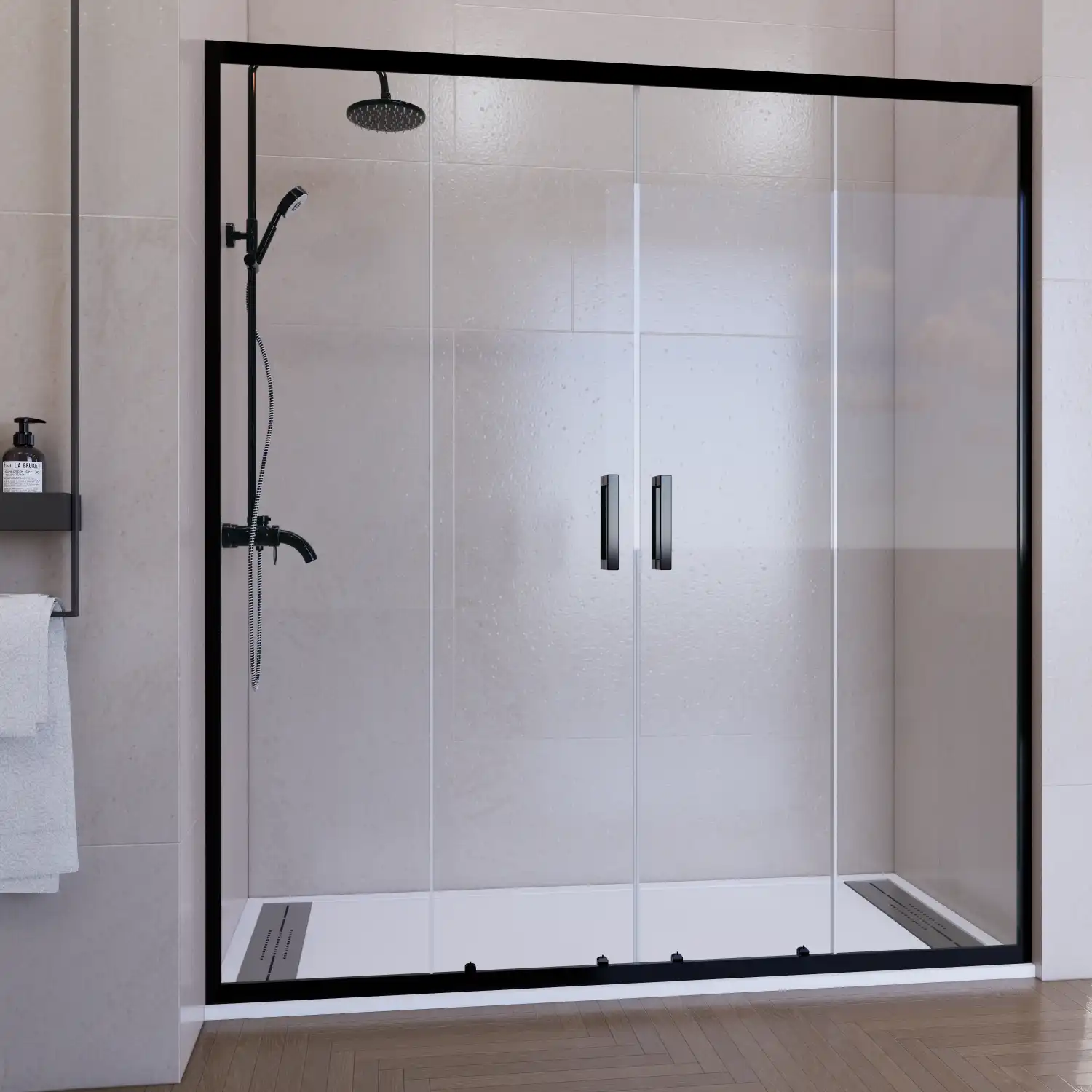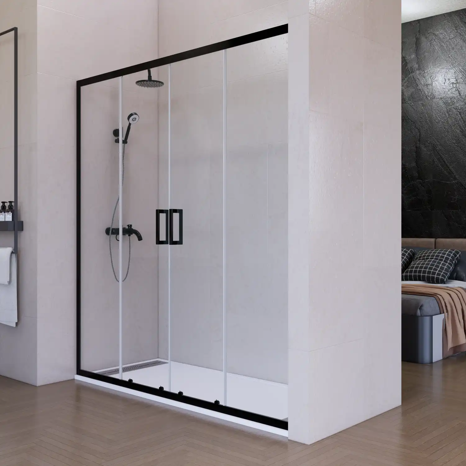 La mampara de ducha frontal con 2 puertas correderas y 2 fijos de 155cm de ancho es la elección perfecta para quienes buscan funcionalidad y estilo en su baño. Diseñada para ofrecer la máxima comodidad y seguridad, esta mampara cuenta con características excepcionales que garantizan una experiencia de ducha superior.