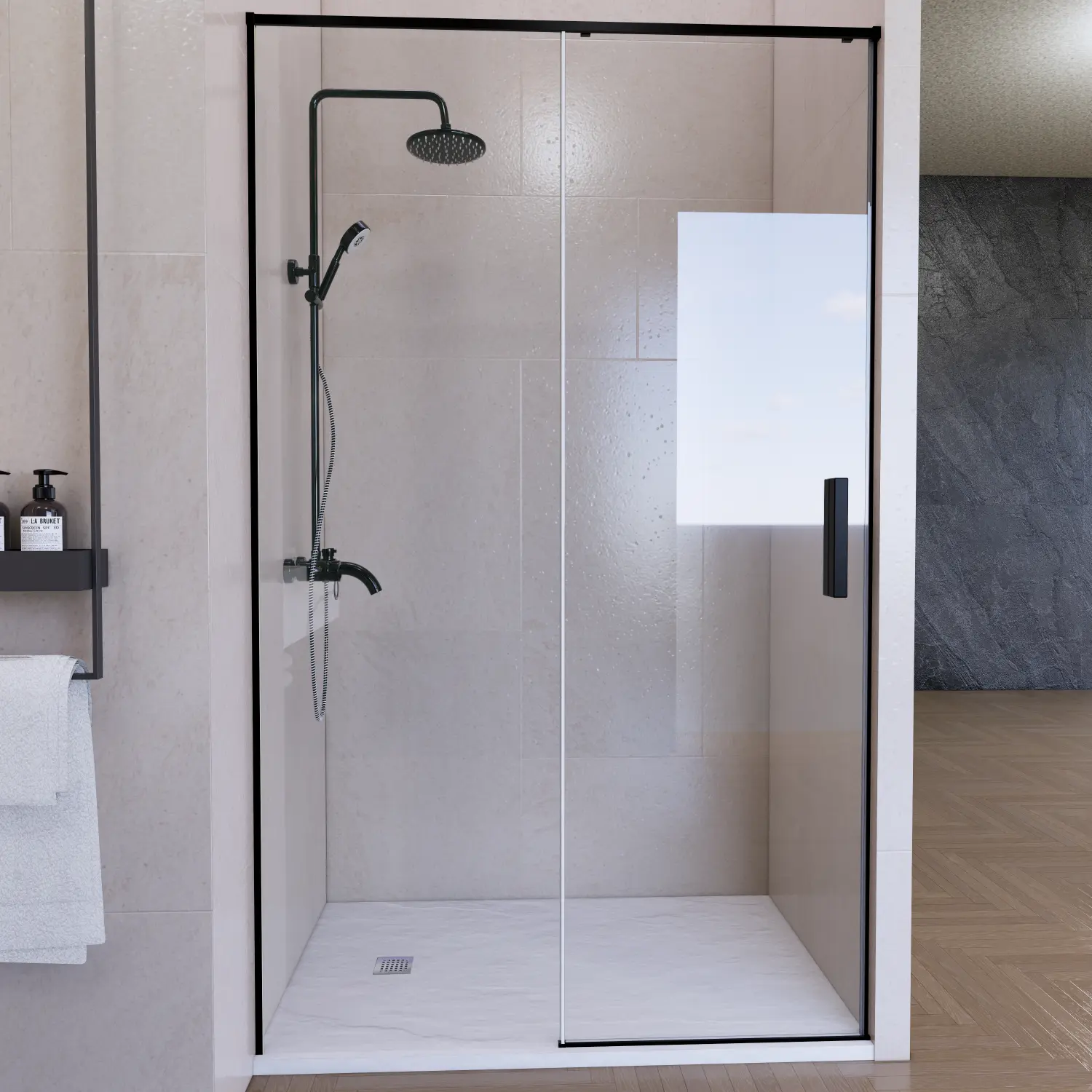 Renueva tu baño con esta elegante mampara de ducha que combina diseño y seguridad en un solo producto. Su estructura metálica de alta calidad, libre de piezas plásticas, asegura durabilidad y resistencia, mientras que su cristal templado de seguridad de 6 mm proporciona firmeza y estabilidad.