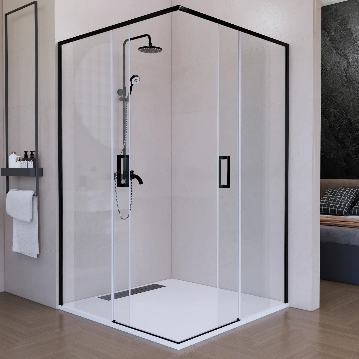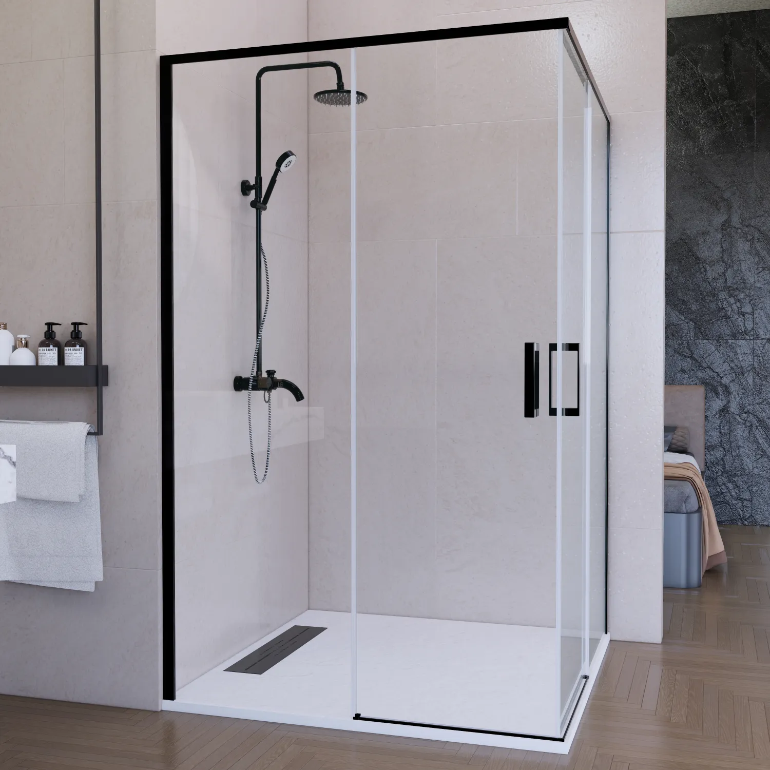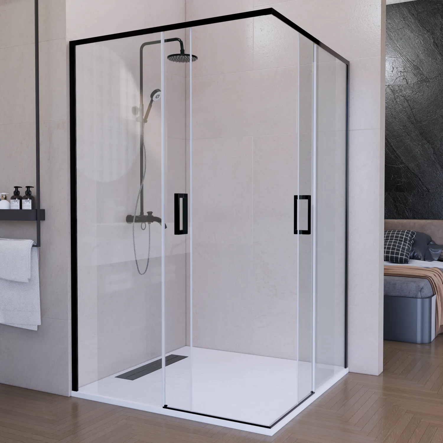 El vidrio templado de seguridad de 6 mm ofrece la máxima estabilidad y resistencia para el uso diario. Gracias al sistema de rodamientos dobles metálicos con ruedas de nylon, las puertas se deslizan con suavidad y sin ruidos. El cierre magnético garantiza estanqueidad, evitando salpicaduras y asegurando una ducha confortable. Además, incorpora perfil inferior que mejora la simetría y refuerza la estanqueidad para evitar fugas de agua.