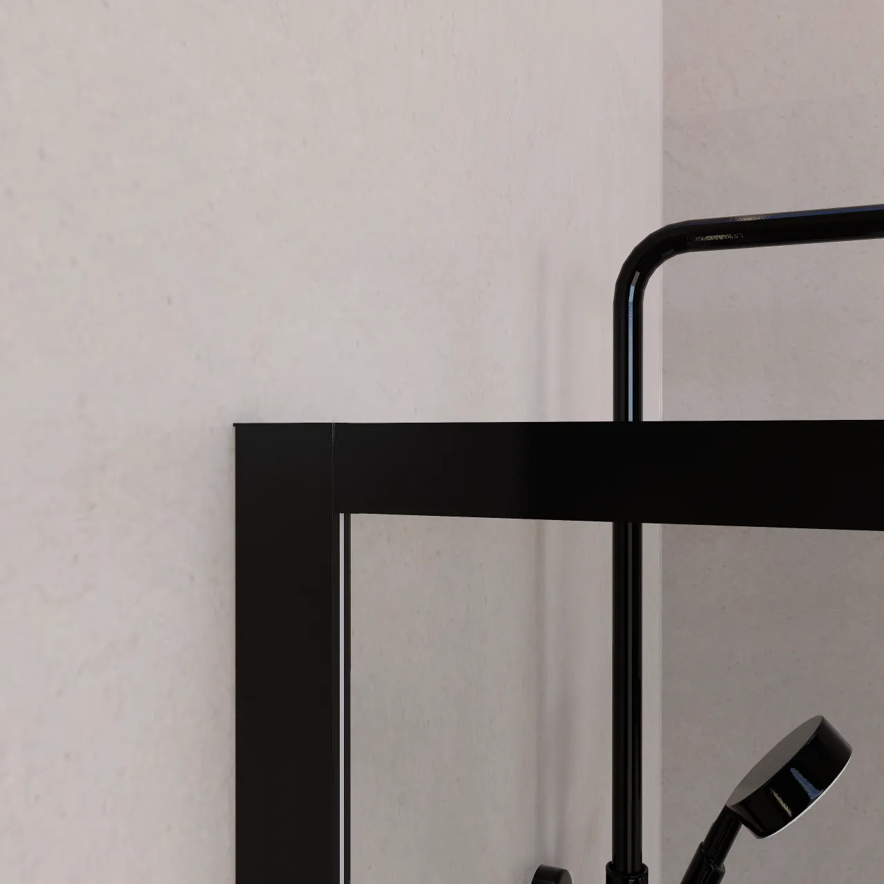 La mampara rectangular combina 2 puertas correderas centrales con 2 paneles fijos, creando un espacio amplio, luminoso y cómodo. Sus perfiles de aluminio anodizado extrafino en acabado Cromo Brillo o Negro Mate aportan resistencia, simetría y un diseño elegante que realza cualquier baño contemporáneo.