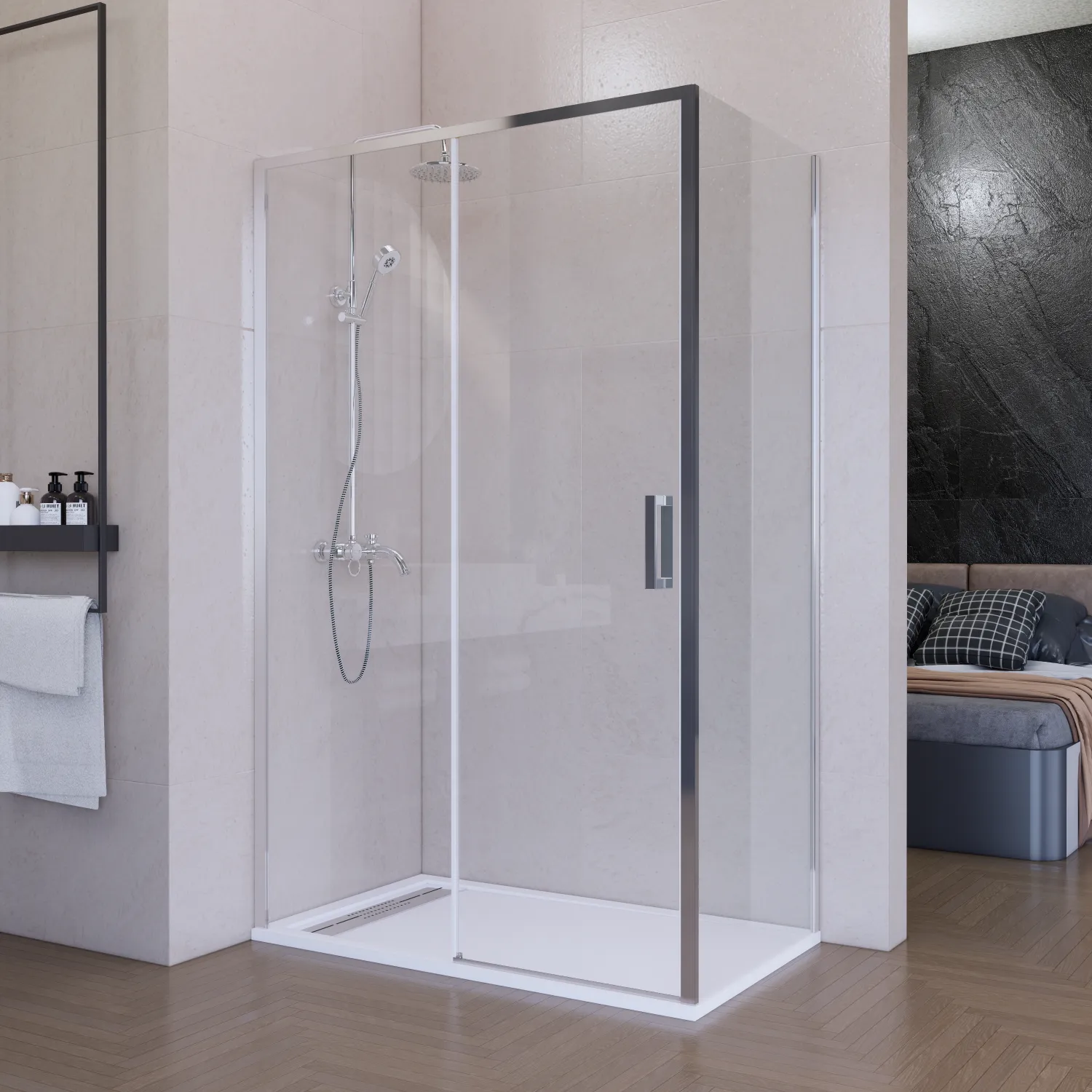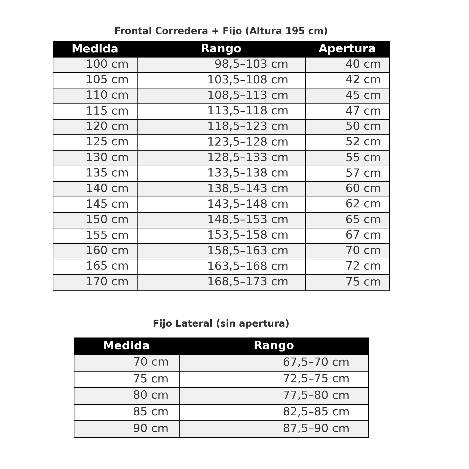 Mampara de Ducha Rectangular Frontal Corredera + Fijo Lateral – Altura 195 cm