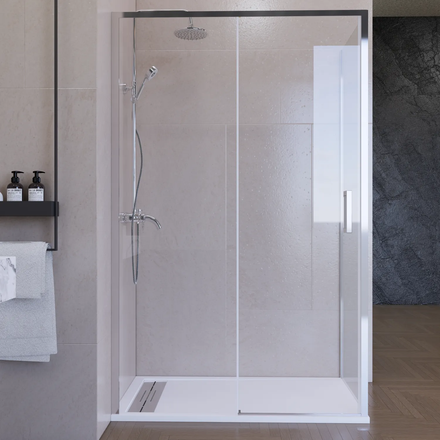 El vidrio templado de seguridad de 6 mm ofrece la máxima estabilidad y resistencia para el uso diario. Gracias al sistema de rodamientos dobles metálicos con ruedas de nylon, la puerta se desliza con suavidad y sin ruidos. El cierre magnético garantiza estanqueidad, evitando salpicaduras y asegurando una ducha confortable.