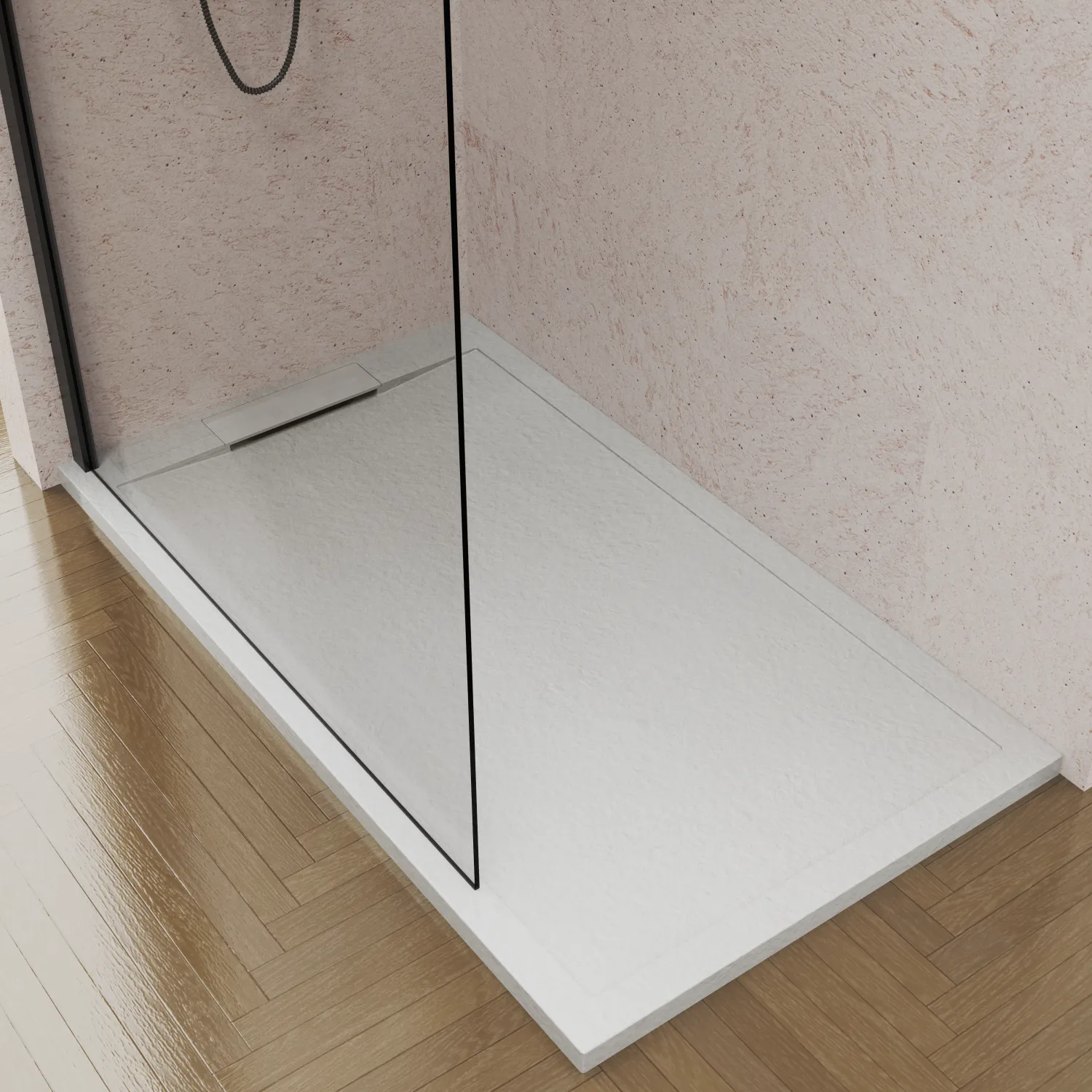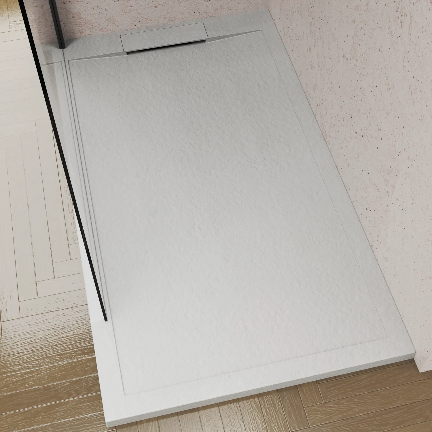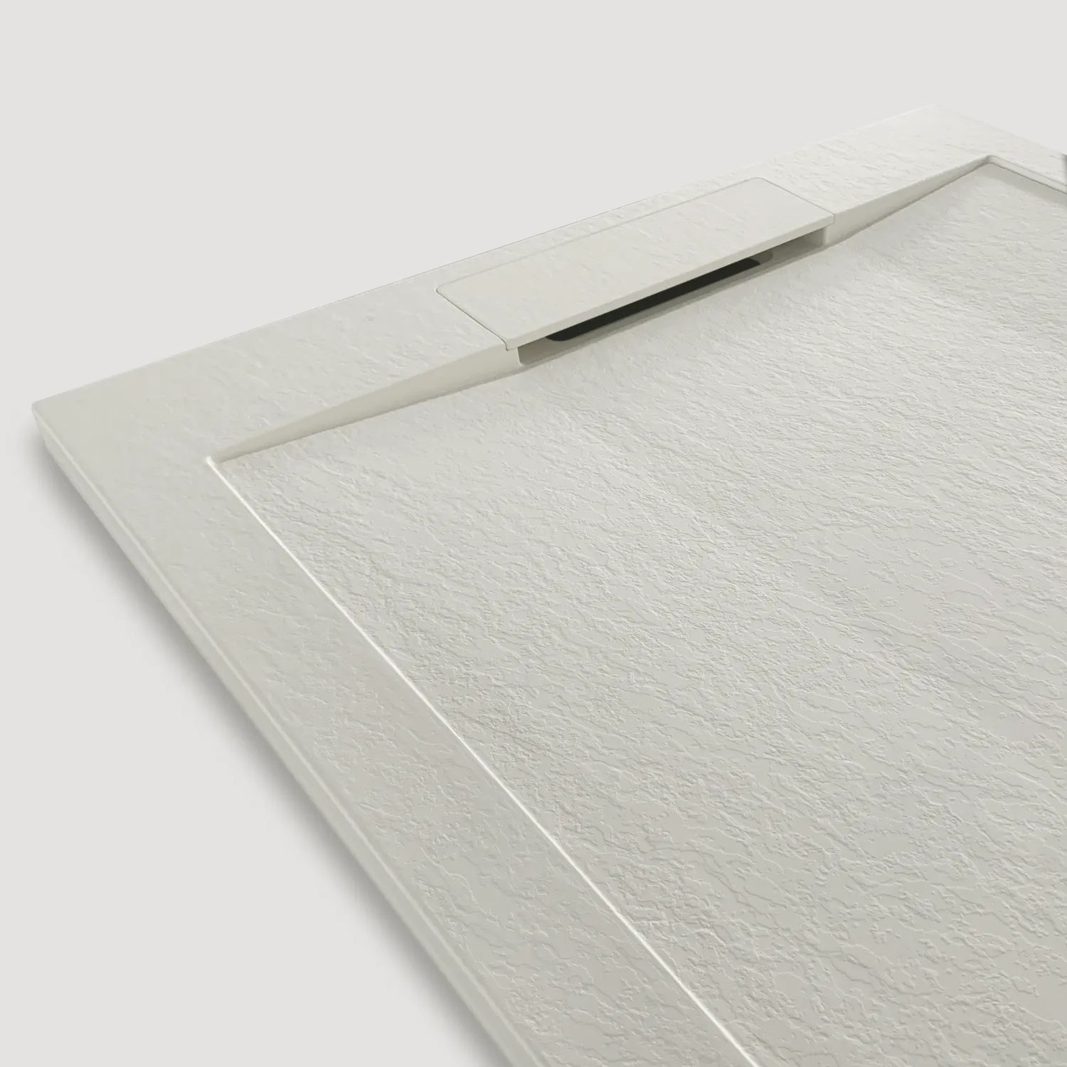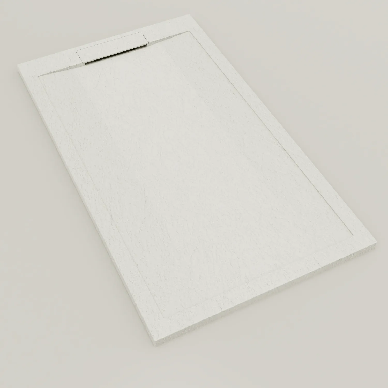 Plato de Ducha en Resina Blanco – Enmarcado – Ultraligero – Textura Pizarra – Rejilla Resina
